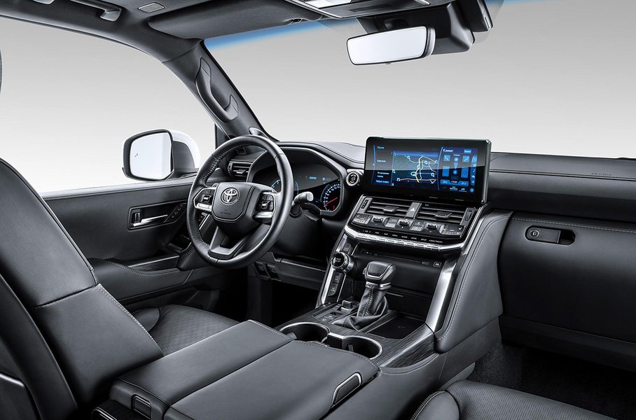 Полностью новый интерьер Тойота Ленд Крузер 300 не поражает обилием новомодных цифровых технологий, но впечатляет основательностью — этими же качествами отличалась и "двухсотка".