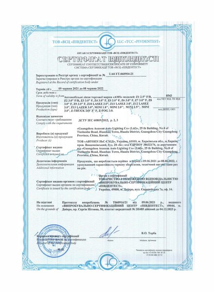 Они также заявляют, что при проектировании линз отдельное внимание было уделено вопросу соответствия показателей света нормативам ЕС, после чего линзы были сертифицированы в Украине согласно требований ДСТУ для автомобильных ламп и световых приборов. Таким образом распределение света, по их словам должно исключать ослепление встречного потока.