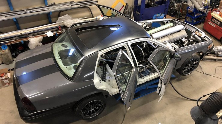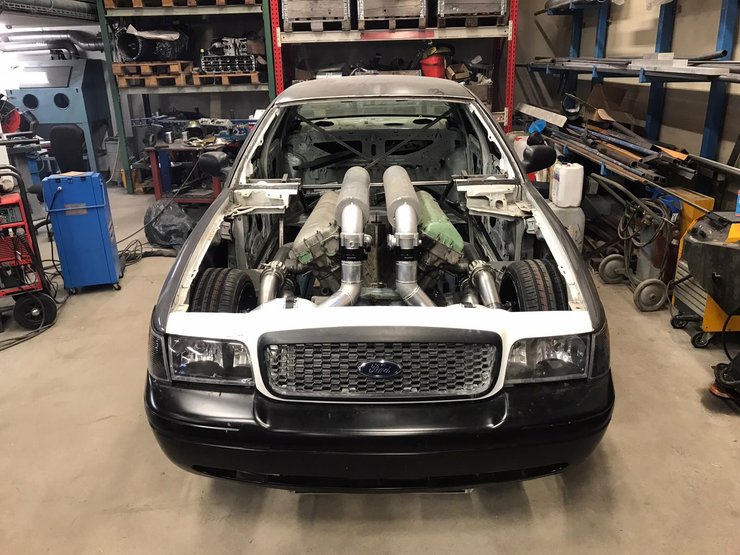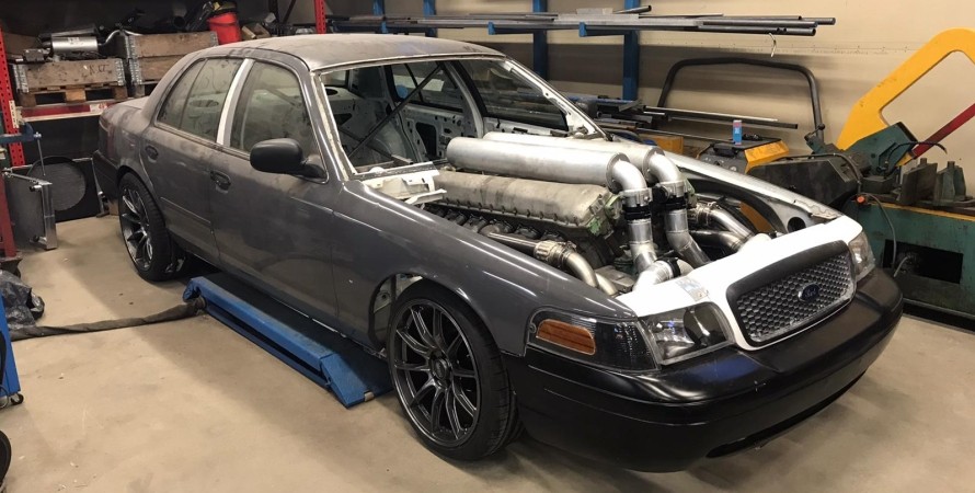 Списанный из полиции седан Ford Crown Victoria получил под капот 27-литровый танковый мотор на 2500 "сил".