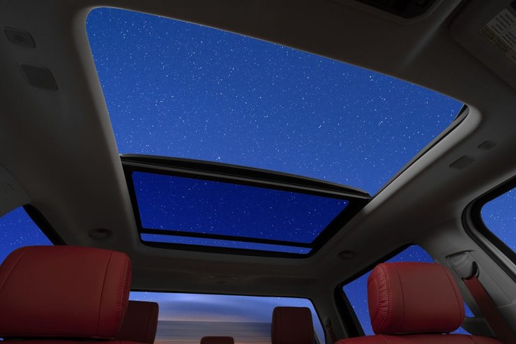 Еще одно улучшение интерьера по сравнению с текущей моделью — панорамный люк в крыше, который должен быть доступен в дорогих комплектациях. На фото ниже показан интерьер Тундры в версии TRD Pro. Заднее будет опускным.