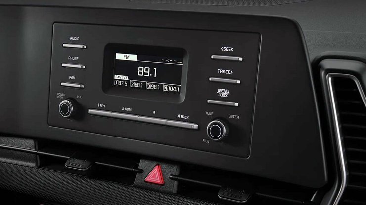 А вот вместо экрана мультимедиа будет… Нет, не дисплей поменьше, как можно было бы подумать. "Музыка" базового Sportage — это простенькая магнитола, как в начале 2000-х годов. А крохотный и вдобавок монохромный дисплей магнитолы и вовсе покажется настоящим порталом в прошлое.