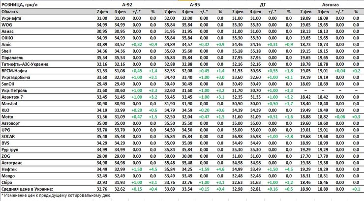 Сети автозаправок с 4 по 7 февраля повысили стоимость топлива с 0,2 до 1,6 гривен за литр. Об этом стало известно из результатов мониторинга цен на рынке консалтинговой группы "А-95", которые имеются в распоряжении Фокуса.