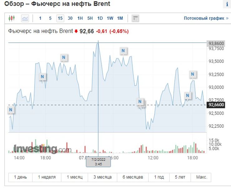 Стоимость барреля нефти Brent по состоянию на утро 7 февраля поднималась до 93,8 долларов, свидетельствуют данные Investing.