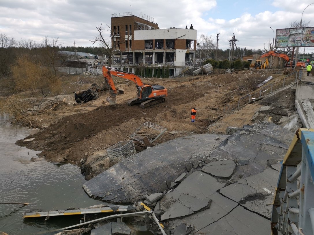 Еще одним приоритетным объектом является мост на трассе М-06 (Киев-Чоп) в Стоянке – его также начали восстанавливать и временная переправа там появится через две недели. К этому времени трассу хотят расчистить от подбитой техники и сгоревших авто. Часть моста откроют через два месяца, а полноценно его отстроят через 3-4 месяца.