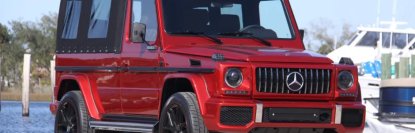 Mercedes-Benz G-Class перекрасили в яркий красный цвет Hyazinthrot Metallic. Также на авто установили бампера, оптику и решетку радиатора от современного Гелендвагена.