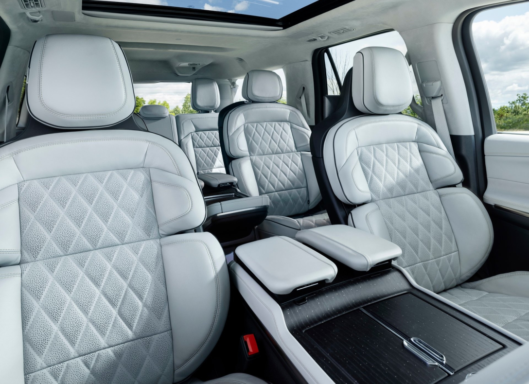 Конечно же, Lincoln Navigator очень роскошен внутри. Его салон отделан кожей и деревом, подогрев есть на всех трех рядах кресел, а сиденья первого и второго рядов также получили электропривод, вентиляцию и массаж. Электроприводом оснащена и двухсекционная дверь багажника, нижнюю часть которой можно превратить в скамейку или столик для пикника.