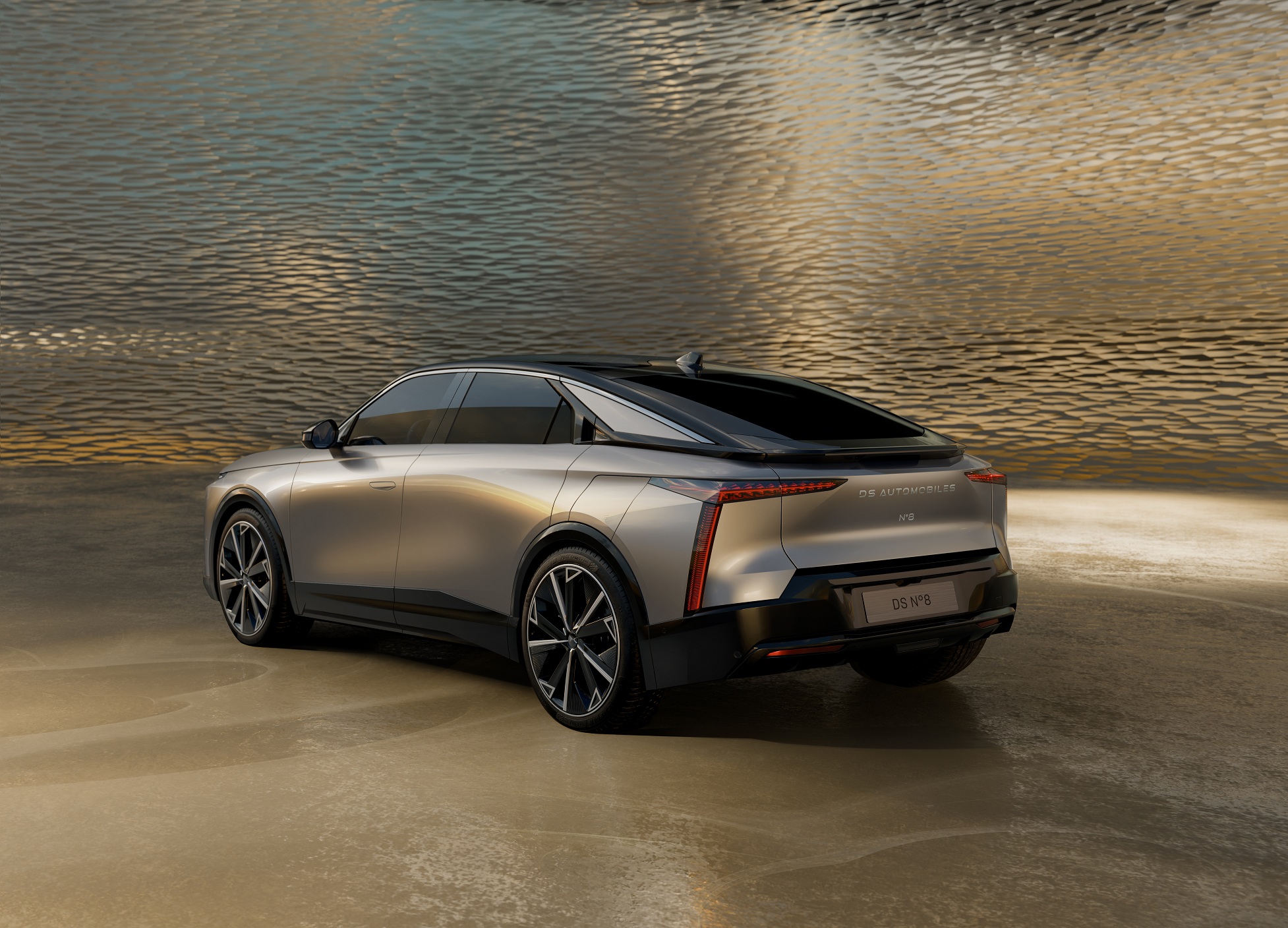 Электромобиль DS №8 — 4,82-метровый кросс-фастбэк на платформе Peugeot 3008 с необычным дизайном. У него вытянутый силуэт с аркообразной крышей. Матричные фары дополнены ходовыми огнями, а подсветка передней части имитирует решетку радиатора.