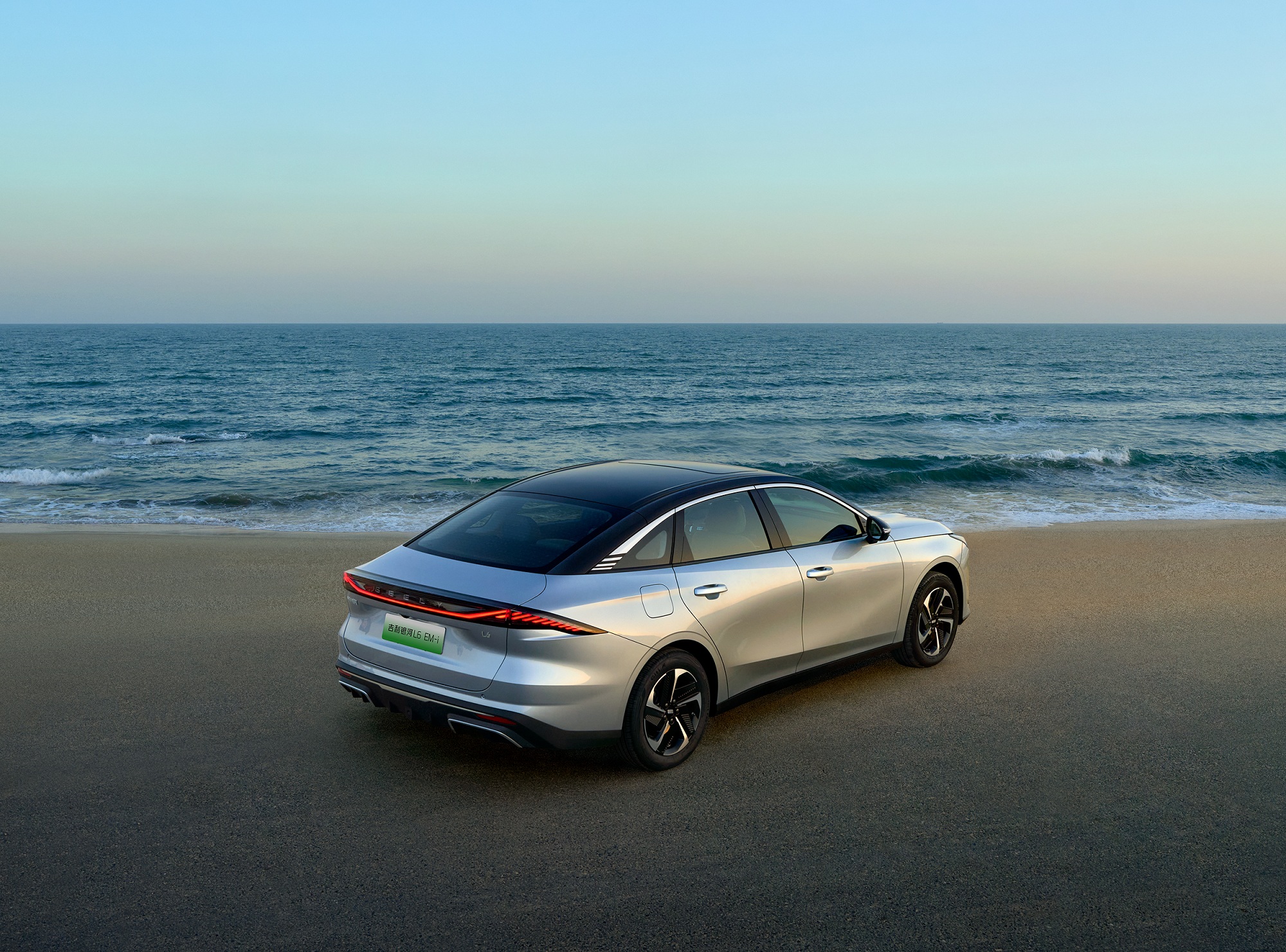 Седан Geely Galaxy L6 EM-i почти не изменился внешне и сохраняет вытянутый обтекаемый силуэт с заостренным "носом", аркообразной крышей и тоненькими диодными фарами и фонарями. Обновленную модель выдают обычные (а не выдвижные) дверные ручки. По размерам авто можно сравнить с VW Jetta.