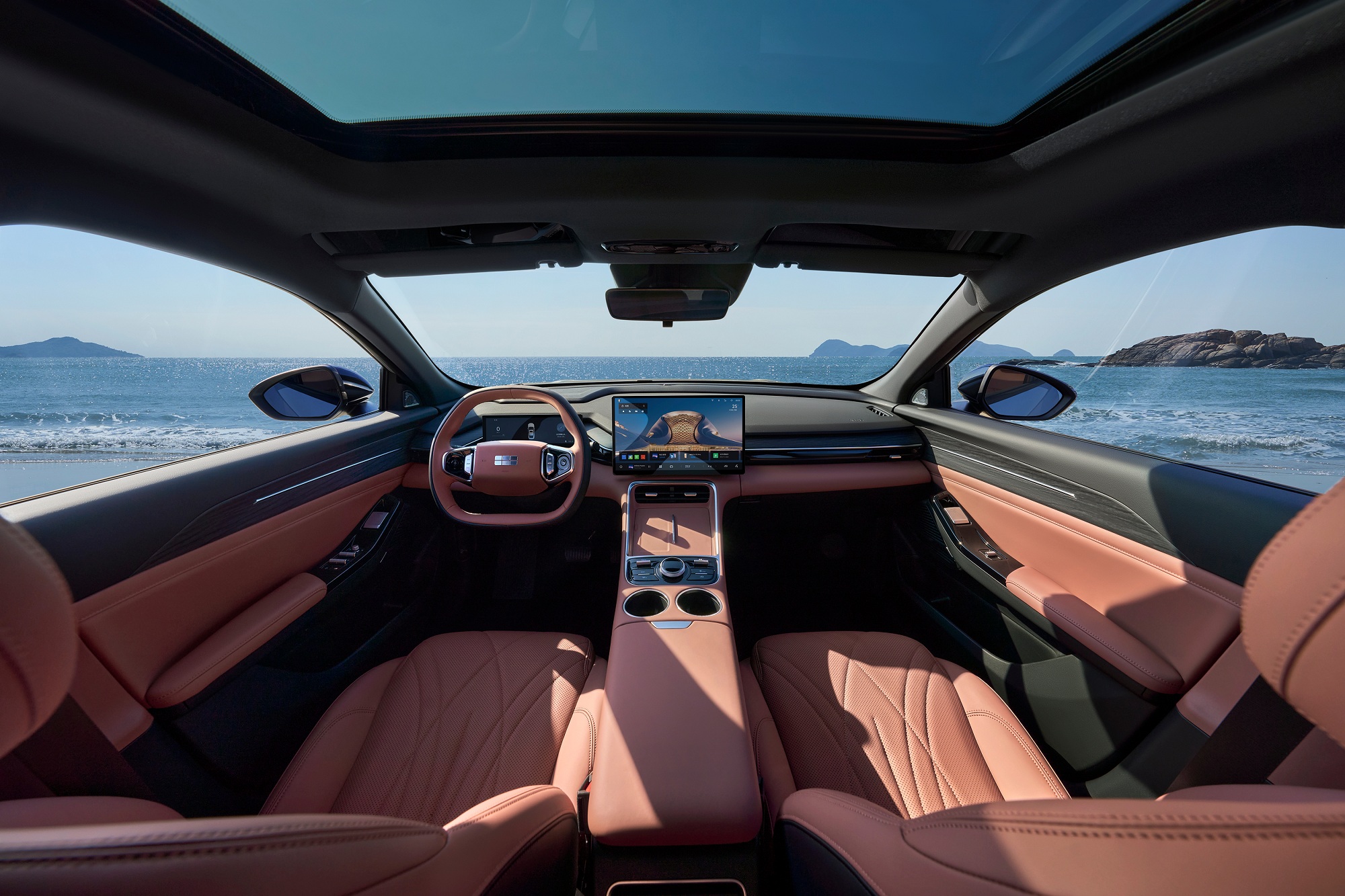 В салоне установлен цифровой щиток приборов и 14,6-дюймовый тачскрин. Передние сиденья разделены высокой двухуровневой консолью. Базовая версия получила бесключевой доступ, навигацию, Wi-Fi и беспроводную зарядку смартфонов.