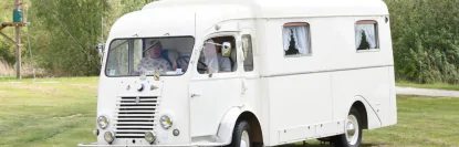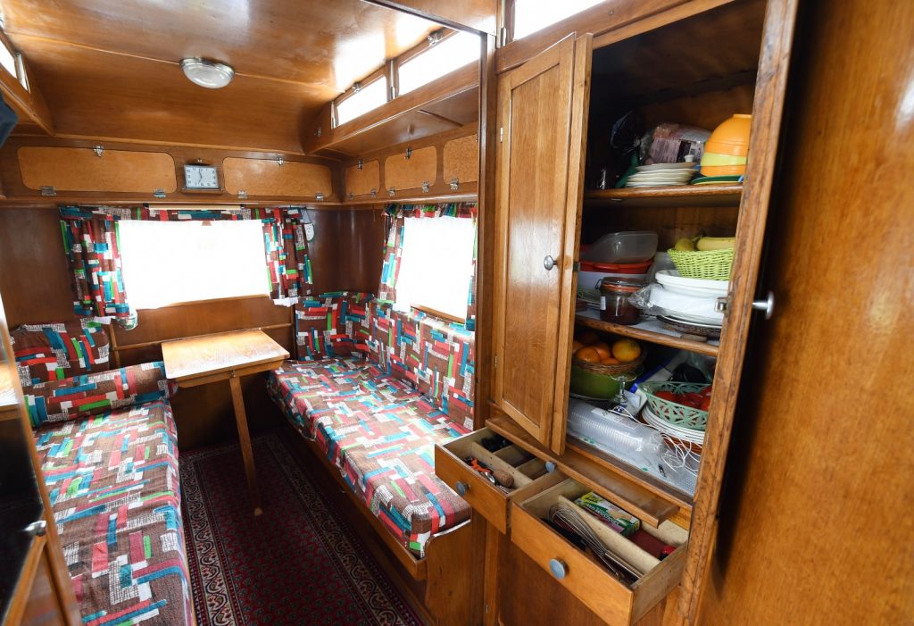 Автодом создан на базе фургона Renault Goelette 1951 года. Внутри установили два дивана, стол и мебельный гарнитур со шкафами и ящиками.
