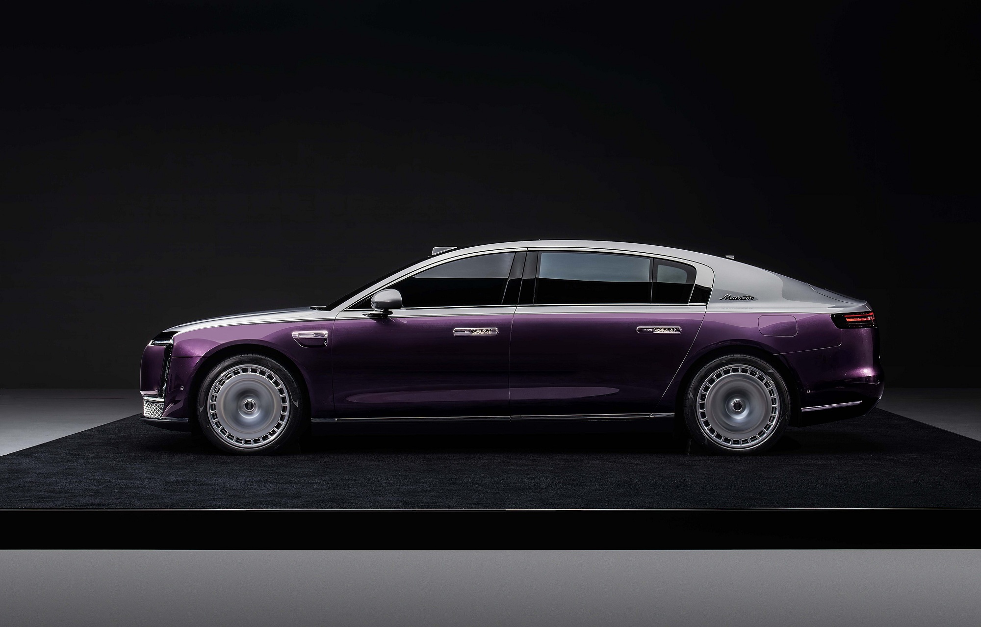 Новый Maextro S800 — седан F-класса с длинным капотом, аркообразной крышей и высокой оконной линией. У него тоненькие матричные фары и выдвижные дверные ручки.