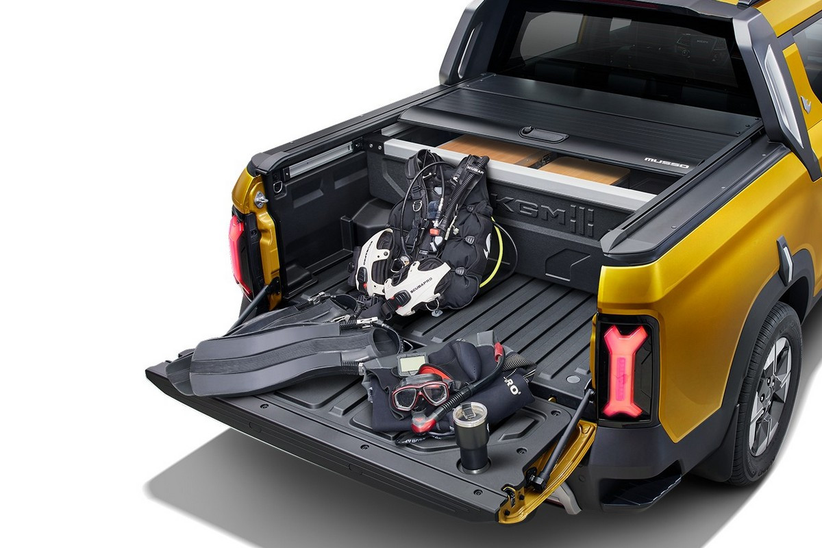 Базовый переднеприводный электромобиль KGM Musso EV оснащен 207-сильным мотором от Torres EVX, а вот для топовой версии отдельно разработали 413-сильную полноприводную установку. Грузоподъемность авто составляет 500 кг.