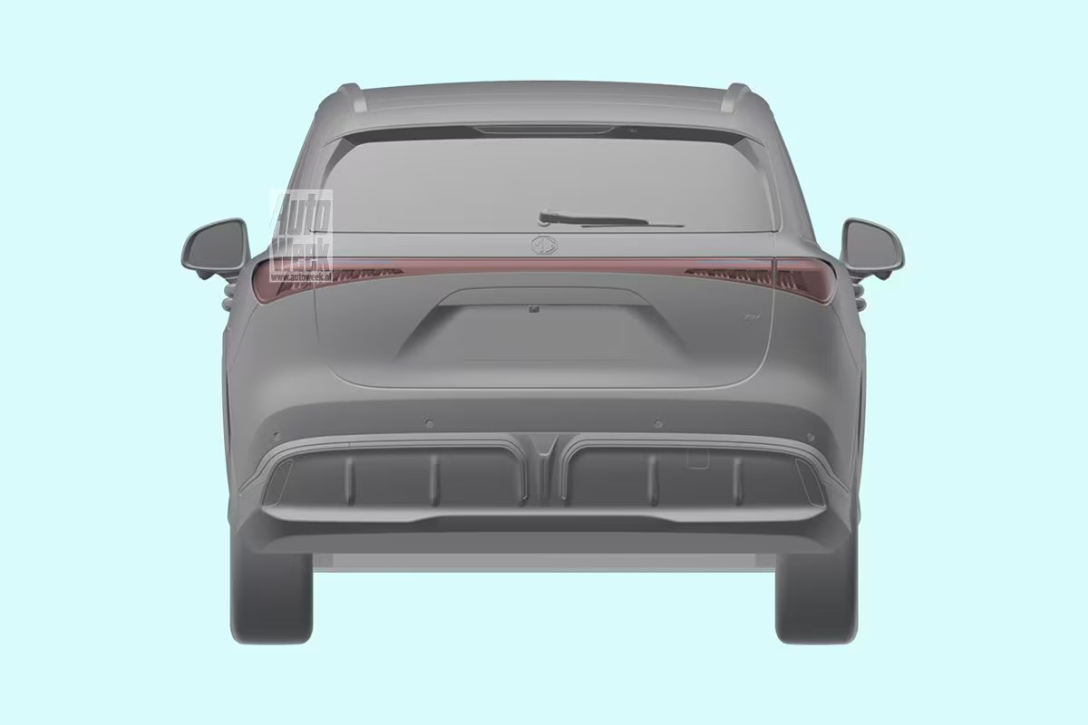 ВажноСудя по изображениям, передняя часть авто выдержана в духе хэтчбека MG4 — у авто выраженный "нос" и тоненькие фары. Однако видно, что кроссовер значительно больше. Фонари кроссовера соединены диодной полосой.