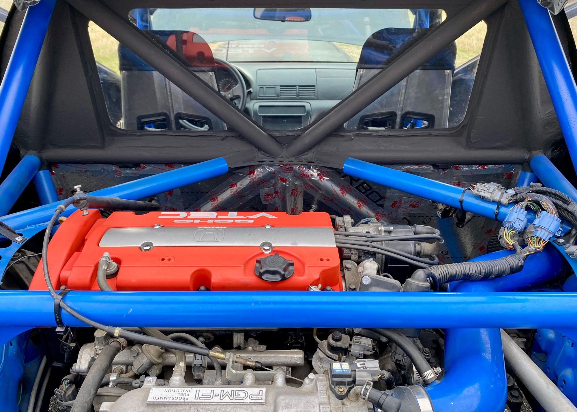 Для двухмоторного авто пришлось создать полностью новое трубчатое шасси, а также добавить в боковинах воздухозаборники для охлаждения заднего двигателя. Также доработали подвеску. Замедляют купе Honda Prelude новые тормоза от Wilwood.