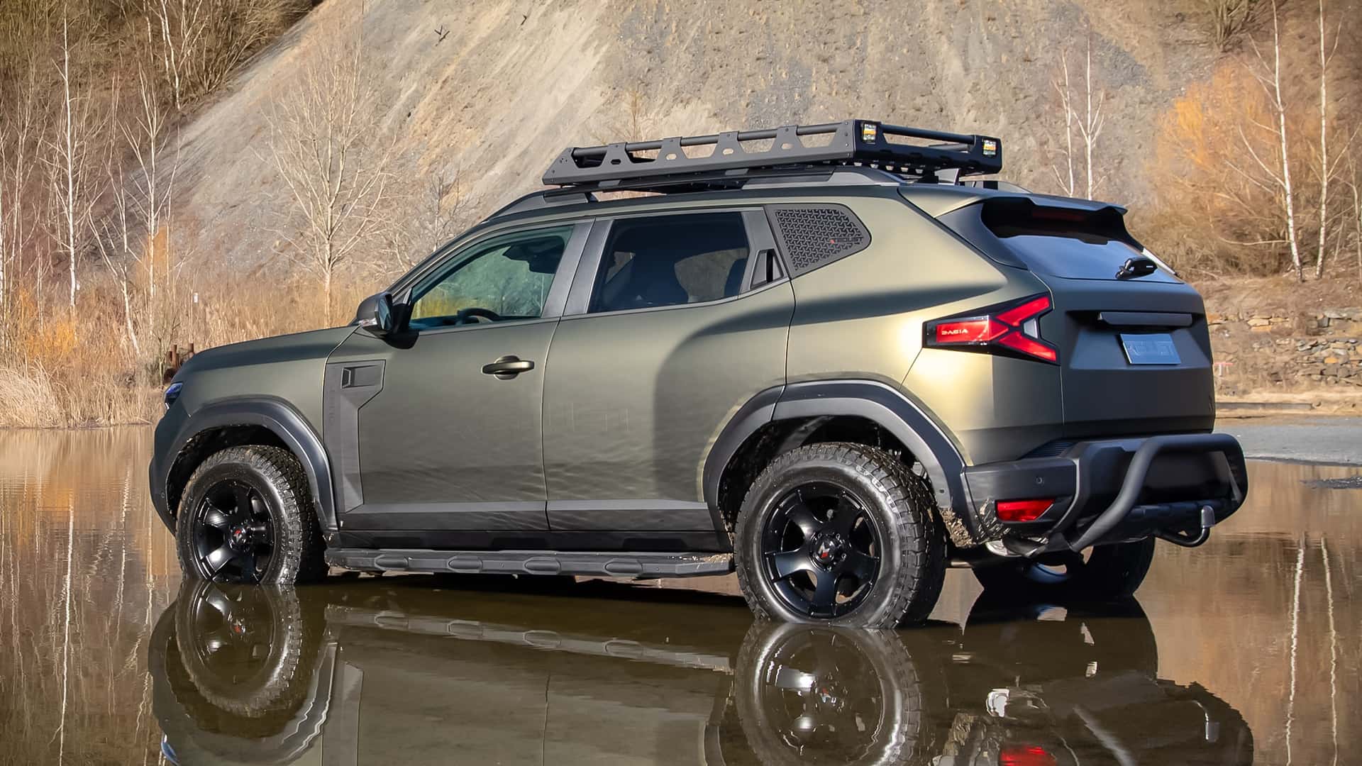 За основу взяли Dacia Duster в комплектации Extreme. Кроссовер получил стальные дуги спереди и сзади, подножки и воздухозаборник на капоте. На крыше появились дополнительные фары и багажник, а задние окошки закрыли декоративными сетками.