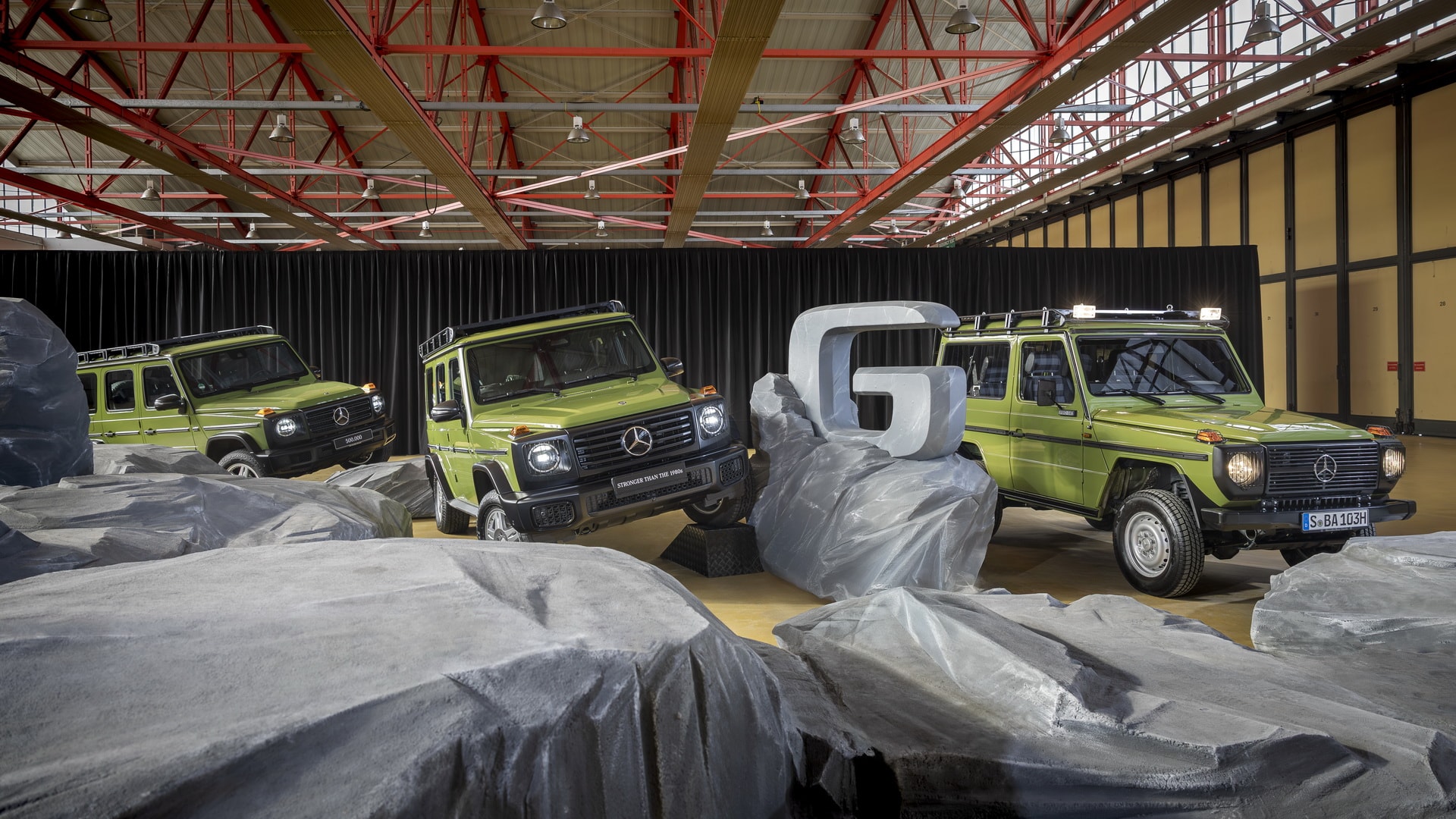 Кроме того, Mercedes G-Class получил особые колесные диски, чехол для запасного колеса из кожзама и багажник на крыше. Цвета кузова также позаимствовали из палитры "Гелендвагена" 80-х годов.