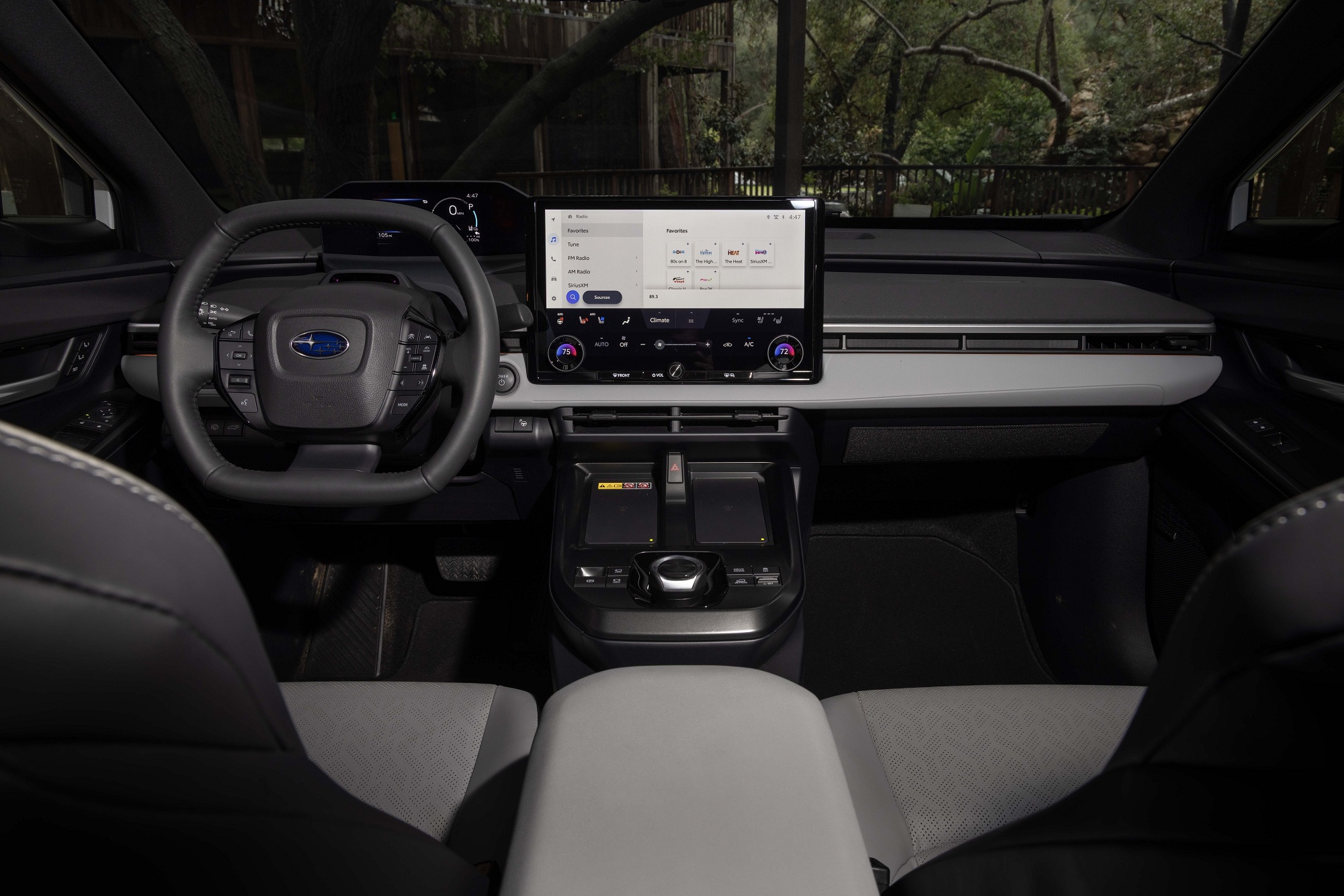 В салоне Subaru Solterra 2025 установили современный 14-дюймовый тачскрин. Кроме того, у электрокара новая центральная консоль с двумя беспроводными зарядками для смартфона.