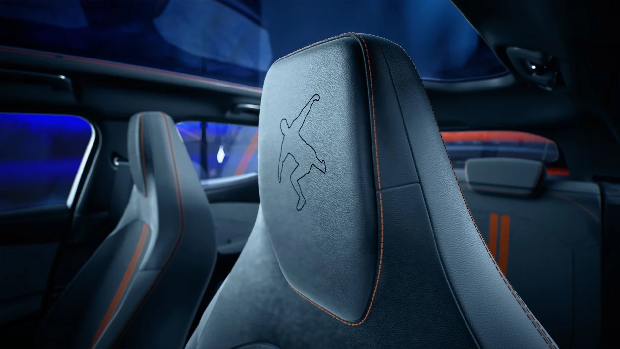 В салоне Ford Capri появились контрастные оранжевые вставки и швы, а подголовники кресел украсили изображениями силуэта футболиста.