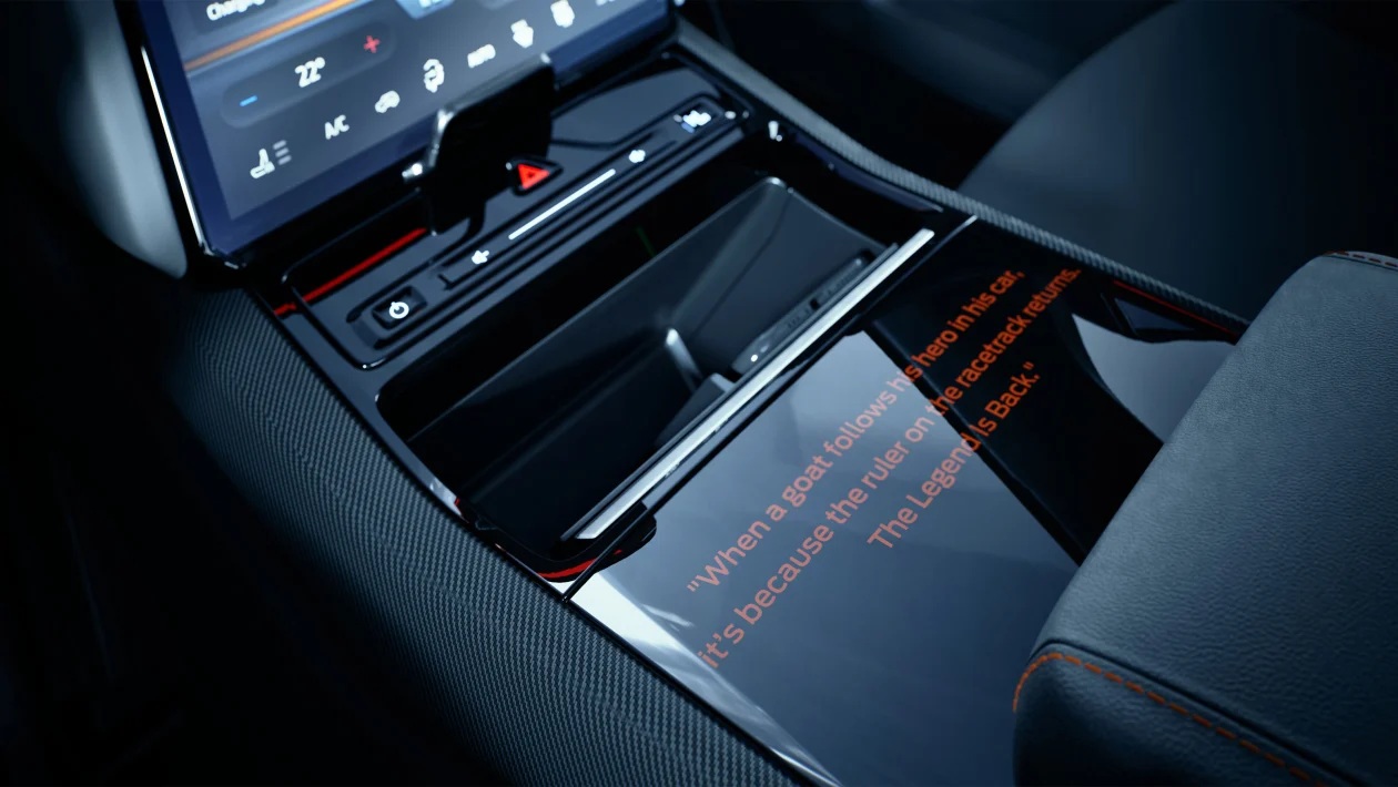 А на центральную консоль Эрик Кантона решил нанести свою экстравагантную цитату: "Когда козел следует за своим героем на его машине, это потому, что повелитель гоночного трека возвращается. Легенда вернулась".