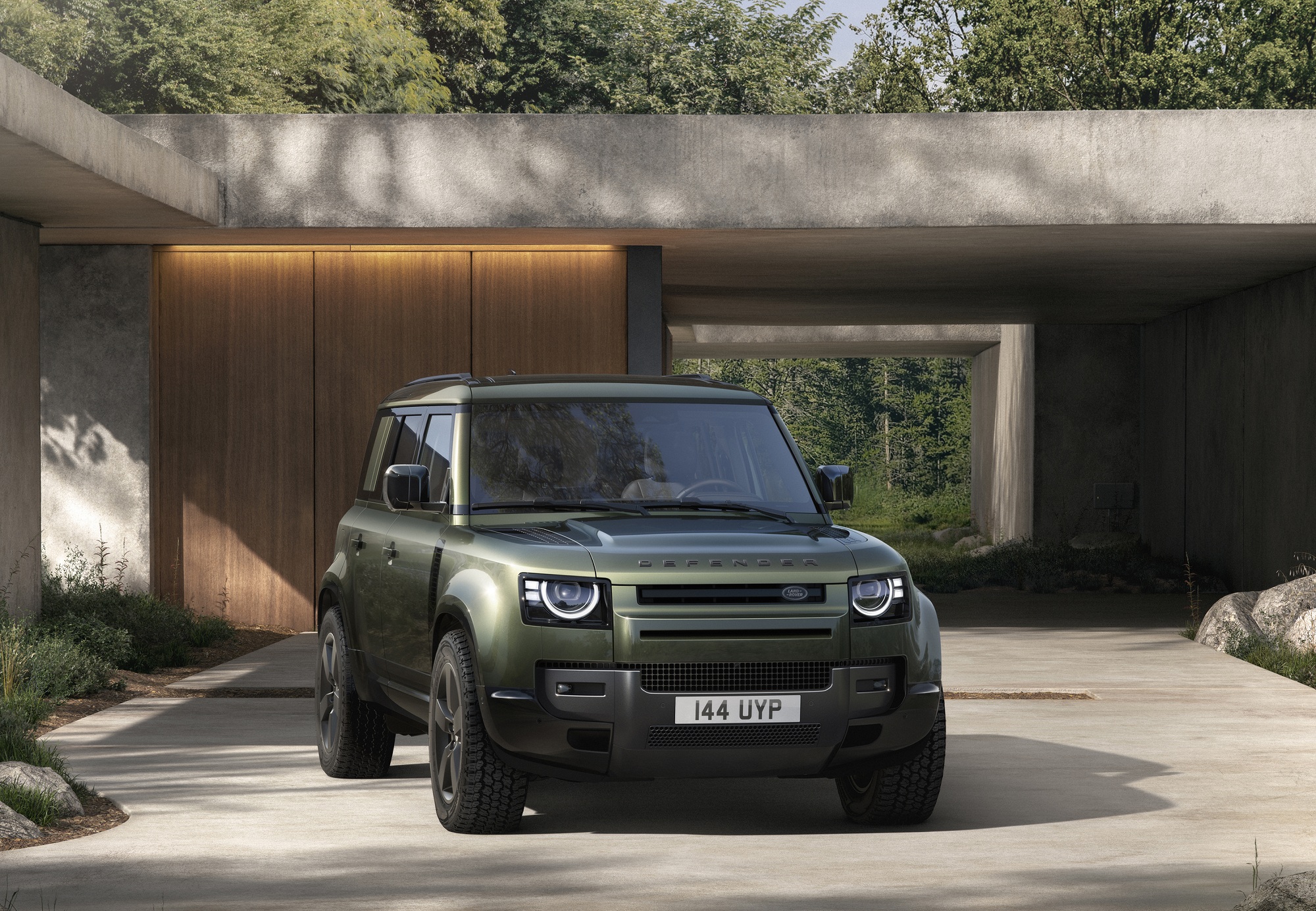 Внедорожный Defender прошел плановый фейслифтинг. Внедорожник узнается по новым бамперам с более выразительным дизайном, измененными фарами и тонированными фонарями. Кроме того, расширили палитру цветов кузова и предложили новые колесные диски диаметром до 22 дюймов.