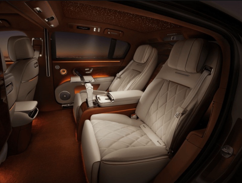 Салон Maextro S800 отделали кожей Nappa и деревом, а подсветка потолка имитирует звездное небо — как у Rolls-Royce. На передней панели установили три дисплея, есть и проекция на лобовое стекло. Окна и панорамная крыша имеют переменную степень тонировки.
