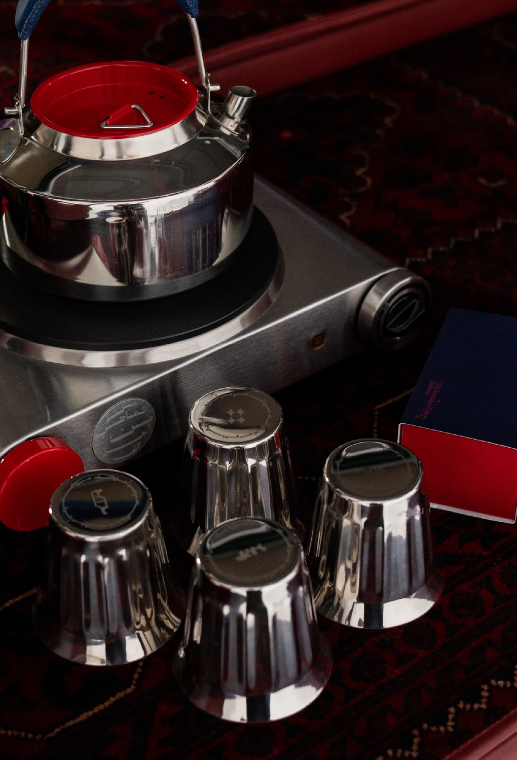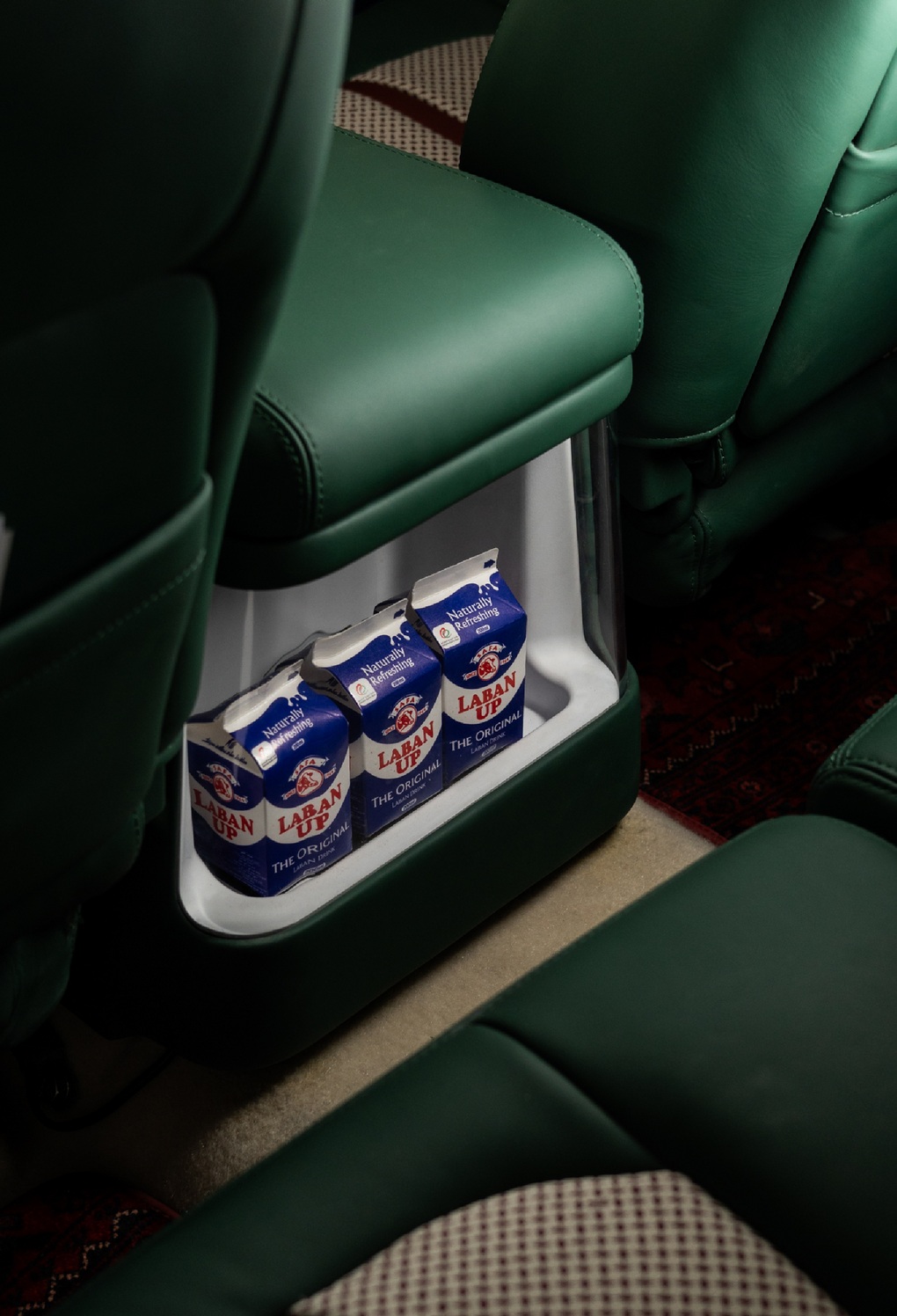 В багажнике же оборудовали своеобразную зону отдыха. Там постелили ковер, добавили подушки и динамики аудиосистемы. Кроме того, появился выдвижной столик. Электромобиль Nissan Patrol также оснастили небольшой электроплитой и дорогим чайным набором.