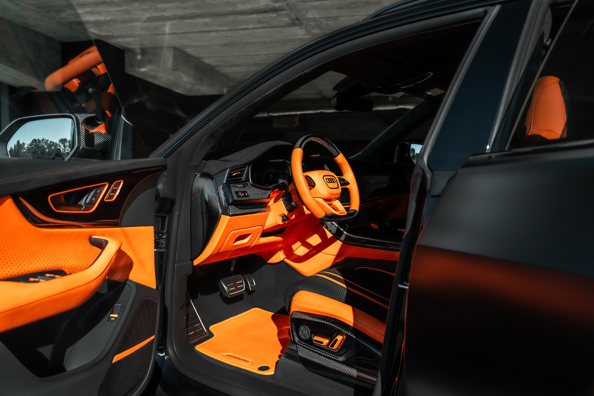 Салон Audi RS Q8 на фото не показали, однако известно, что в Crazy D Customs предлагают разнообразные варианты отделки кожей и карбоном.