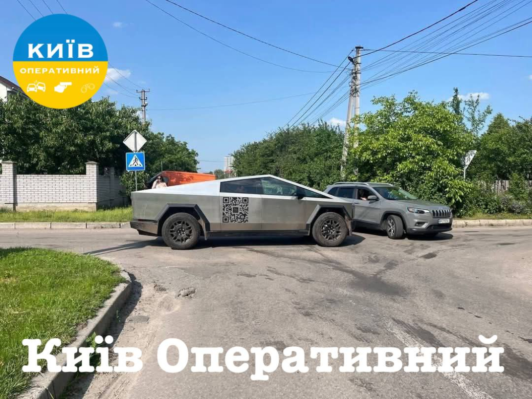 Электромобиль Tesla Cybertruck впервые попал в ДТП в Украине. Стальной пикап неплохо выдержал удар.