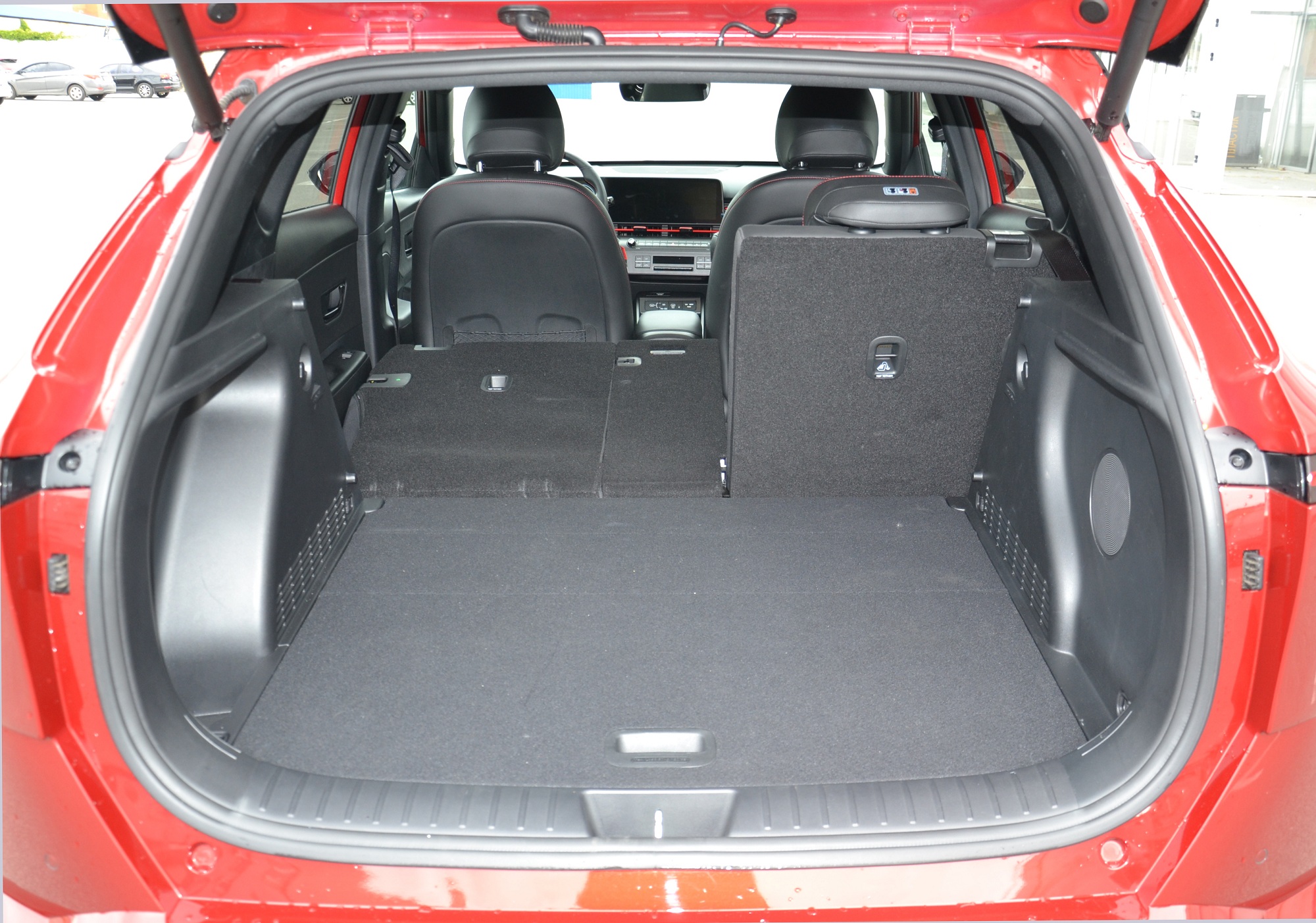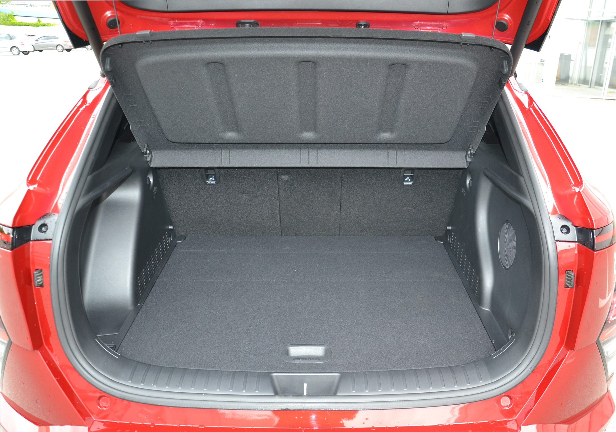 Увеличился и багажник Hyundai Kona. Теперь его объем составляет 466 л в обычном состоянии и 1300 л со сложенными задними креслами. Дверь багажника довольно широкая и имеет электропривод в более дорогих версиях. Впрочем, боковины не обшиты тканью — там голый пластик. Под полом нет запаски, зато есть небольшой отсек.