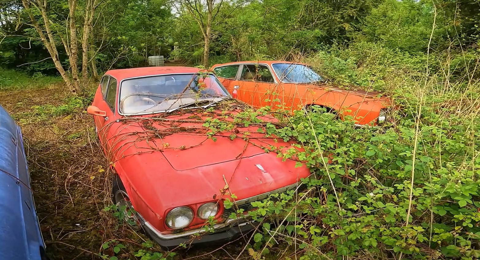 В лесу обнаружили два авто ранних серий (до 1975 года) и одну более позднюю модель 80-х. Британский Reliant Scimitar выпускали с 1968 по 1986 год и всего собрали 14 243 авто. Модель является гибридом спортивного купе и практичного универсала.