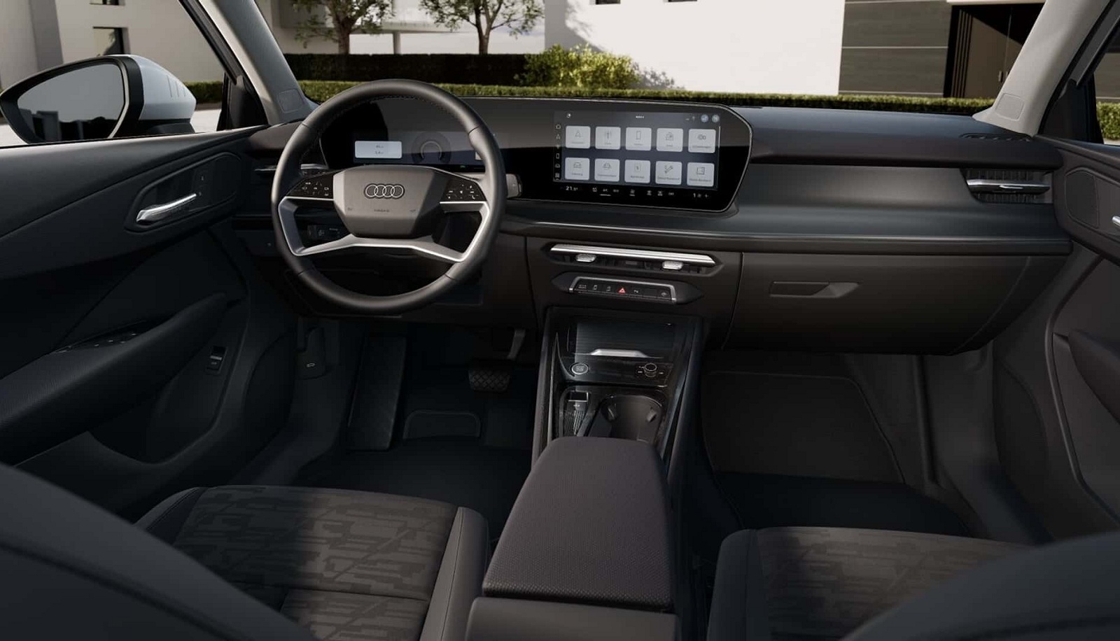 В салоне базового Audi Q3 2025 иначе четырехспицевый руль и более простая отделка, а у подсветки не меняется цвет. Впрочем, кроссовер сохранил и два больших дисплея на передней панели, и кнопку запуска двигателя. Также есть электронный "ручник", беспроводная зарядка смартфонов и адаптивный круиз-контроль.