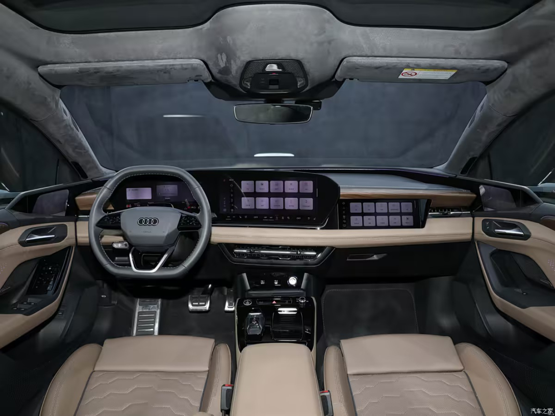 Есть изменения и в салоне — там установили третий дисплей на передней панели, предназначенный для пассажира. Также новый Audi A6L e-tron получил иную мультимедийную систему от Huawei. Эта же компания разработала и систему полуавтономного движения. Комплектацию пополнила панорамная крыша.
