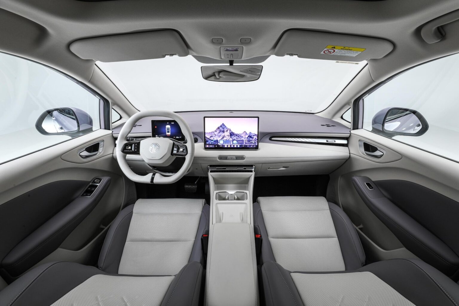 В салоне установили скошенный руль, небольшой цифровой щиток приборов и крупный 15,6-дюймовый тачскрин. Хэтчбек имеет 471-литровый багажник с 98-литровым отсеком под полом. Комплектация MG4 включает камеры кругового обзора, парковочный автопилот с дистанционным управлением, подогрев сидений и руля.