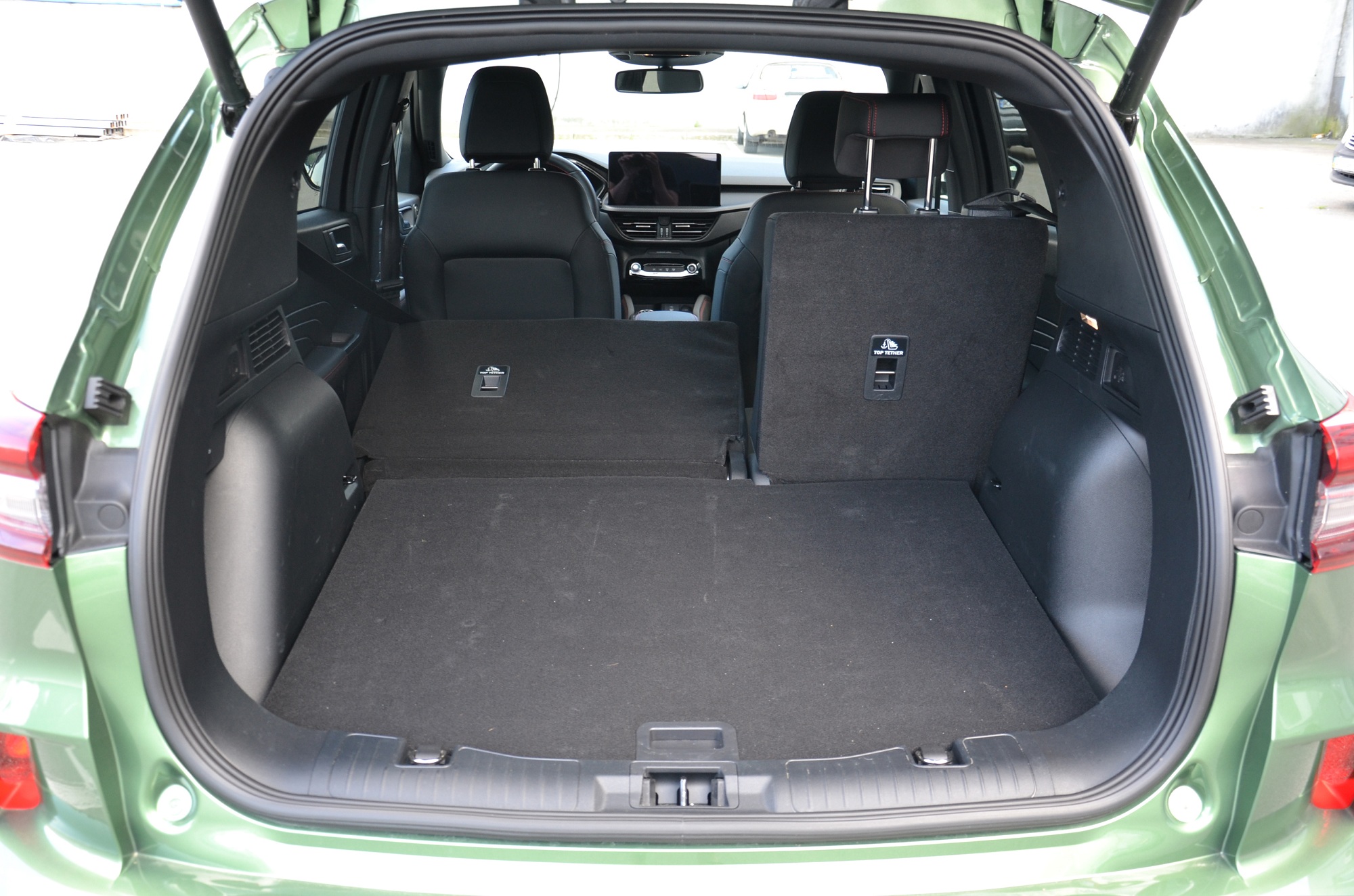 Гибрид Ford Kuga имеет несколько меньший багажник, чем бензиновая модификация, однако он все равно немалый: до 536 л в обычном состоянии и 1481 л — со сложенными креслами. Под полом — запаска-докатка. Дверь багажника имеет электропривод с сенсором открытия.