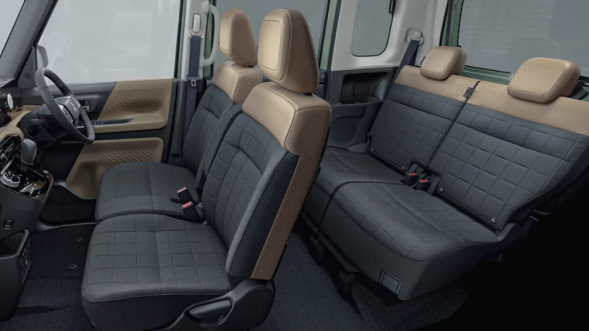 В четырехместном салоне Mitsubishi Delica Mini установлен цифровой щиток приборов и 12,3-дюймовый тачскрин. Рычаг КПП расположен довольно высоко Кроме того, улучшили внутреннюю отделку, усилили шумоизоляцию и установили камеры кругового обзора.