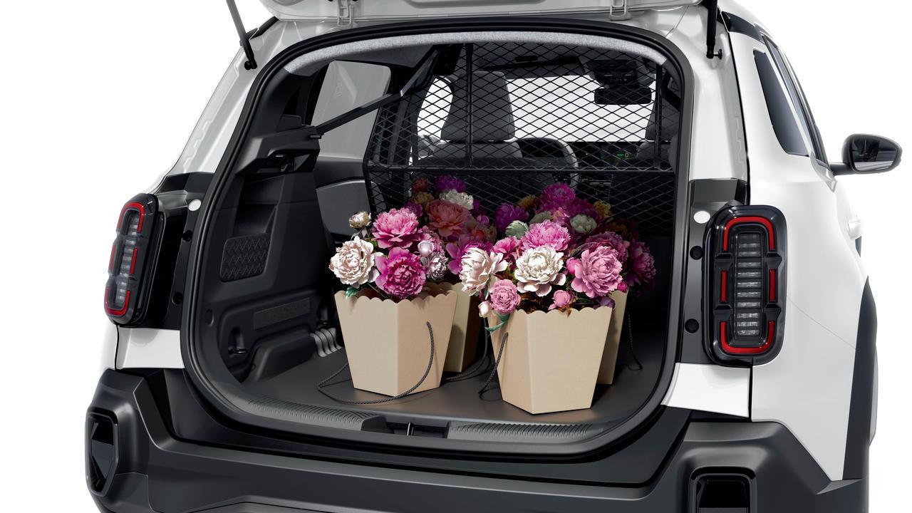 Грузоподъемность Renault 4 E-Tech составляет 345 кг. Внутри появились резиновый коврик, а также крюки и фиксаторы для багажа. От передних сидений грузовой отсек отделен перегородкой.