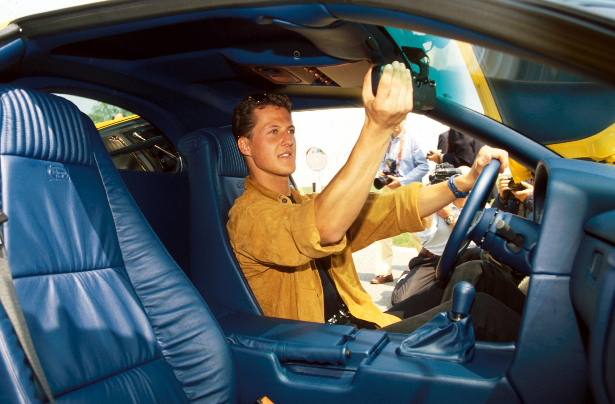 Впрочем, лимитированный (выпущено 33 таких купе) суперкар Bugatti EB110 SS был облегчен, а его интерьер сделали более простым. Однако на желтое авто Шумахера установили более комфортный кожаный салон от Bugatti EB110 GT. Это делает его уникальным — другого такого EB110 не существует.