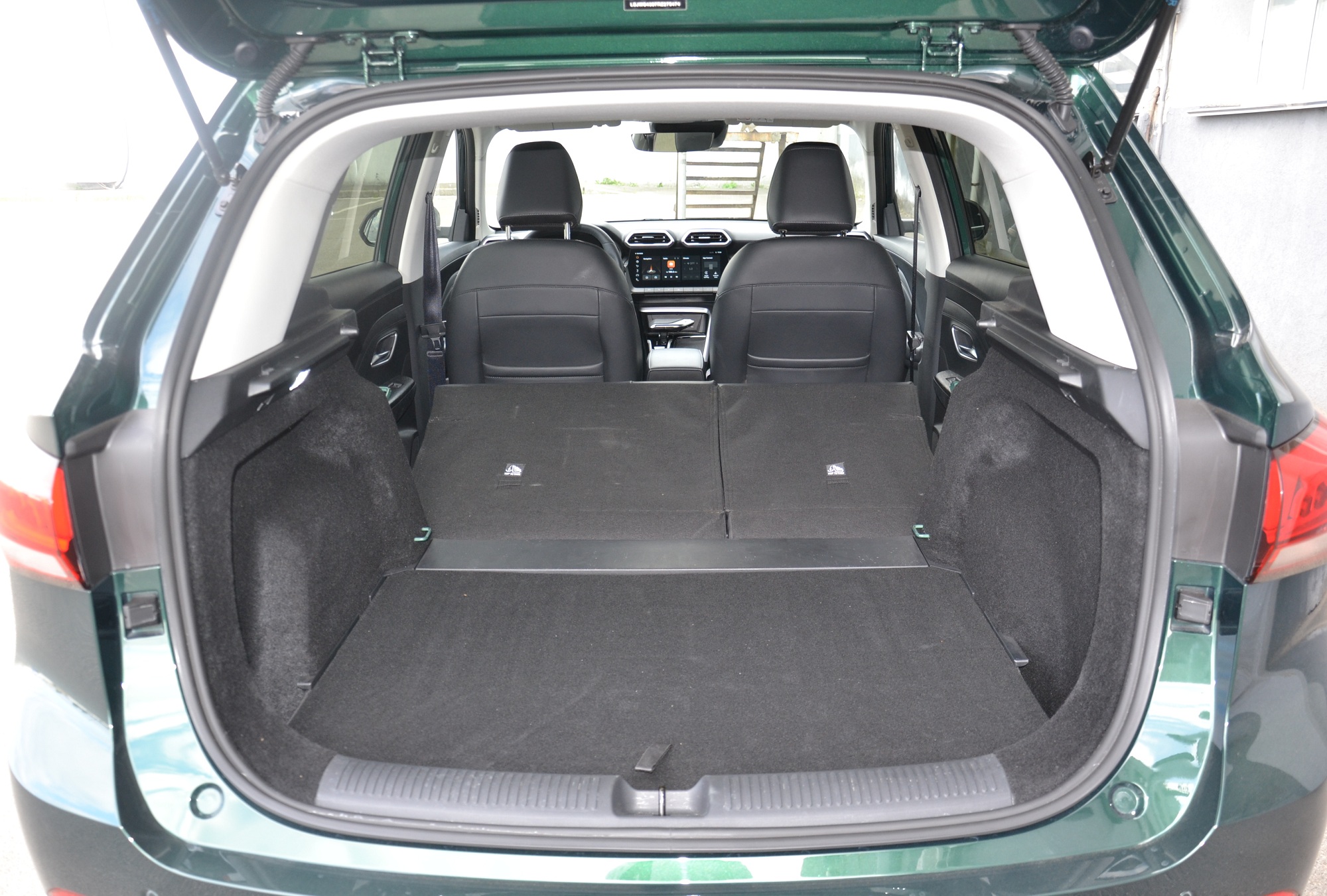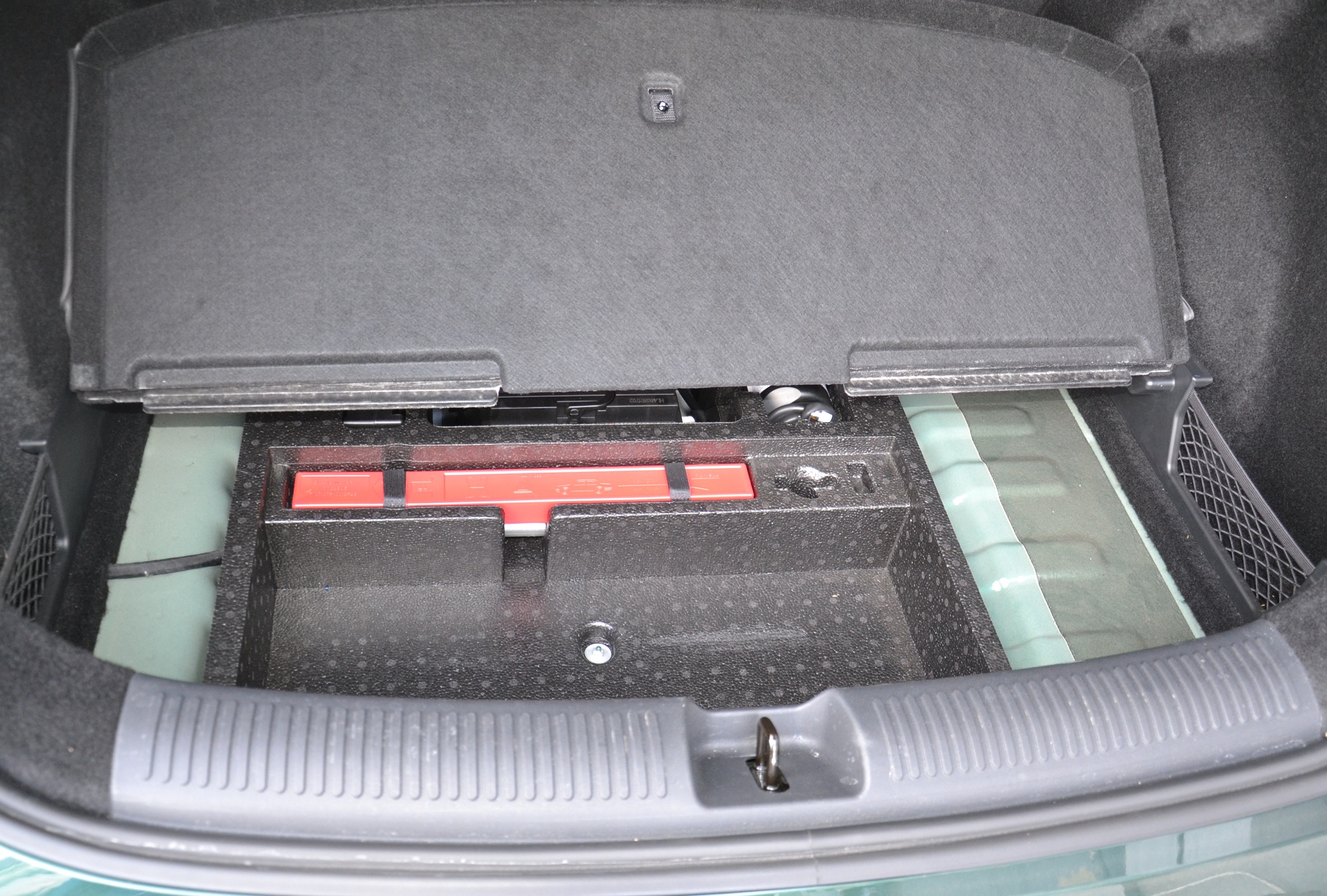 Багажник MG ZS 2025 в гибридном исполнении такой же, как у бензиновой модели: 443 л в обычном состоянии и 1457 л со сложенными задними креслами. Под полом — органайзер для инструментов или других мелких вещей. А вот запаски нет — для гибридов это обычная ситуация, ведь под полом установлена батарея.