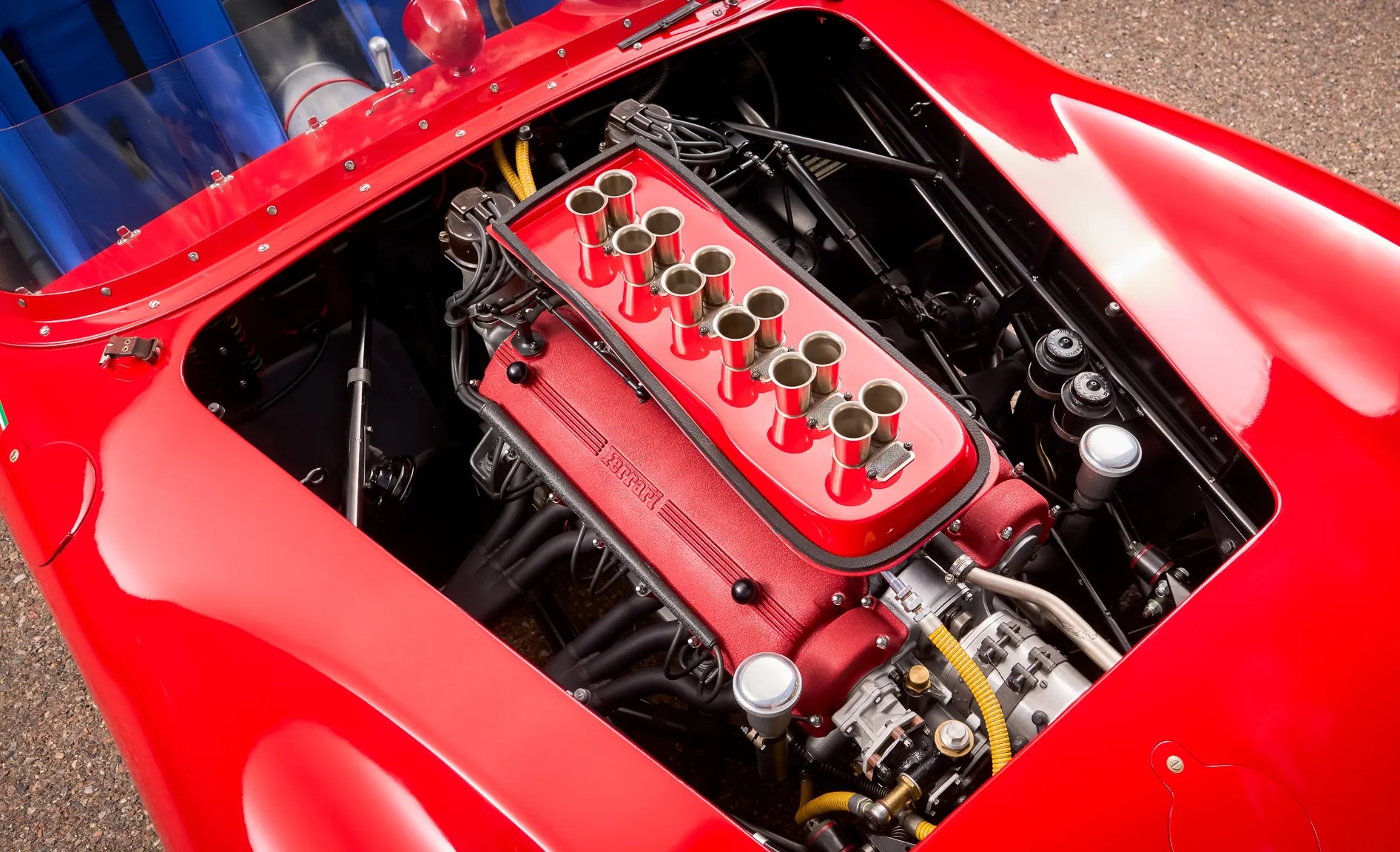 Ferrari 250 Testa Rossa оснащен 3,0-литровым V12 мощностью 300 л. с. Легкое алюминиевое авто массой 800 кг способно разогнаться до 100 км/ч за 6 с и развить 270 км/ч.