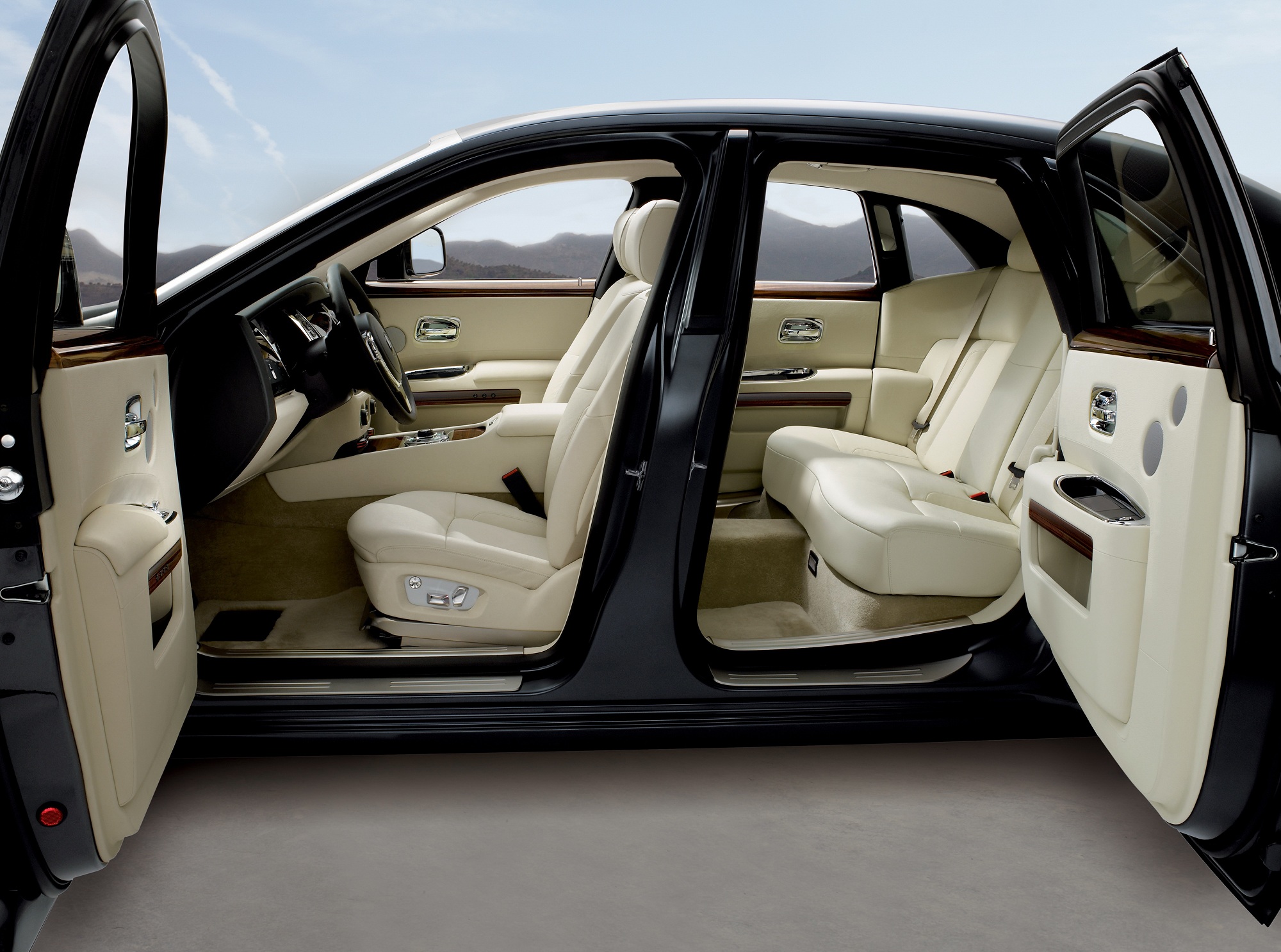 Для Rolls-Royce Ghost предлагали 600-ваттную акустику, систему ночного видения, камеры кругового обзора, четырехзонный климат-контроль, электропривод, вентиляцию и массаж всех сидений.