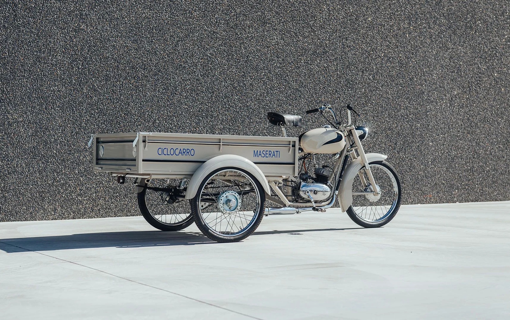 Грузовой Maserati весит всего 115 кг и оснащен скромным двухтактным одноцилиндровым двигателем объемом 49 куб. см и мощностью всего 2 л. с. С 3-ступенчатой механической КПП максимальная скорость составляет 40 км/ч. Также имеется педальный привод.