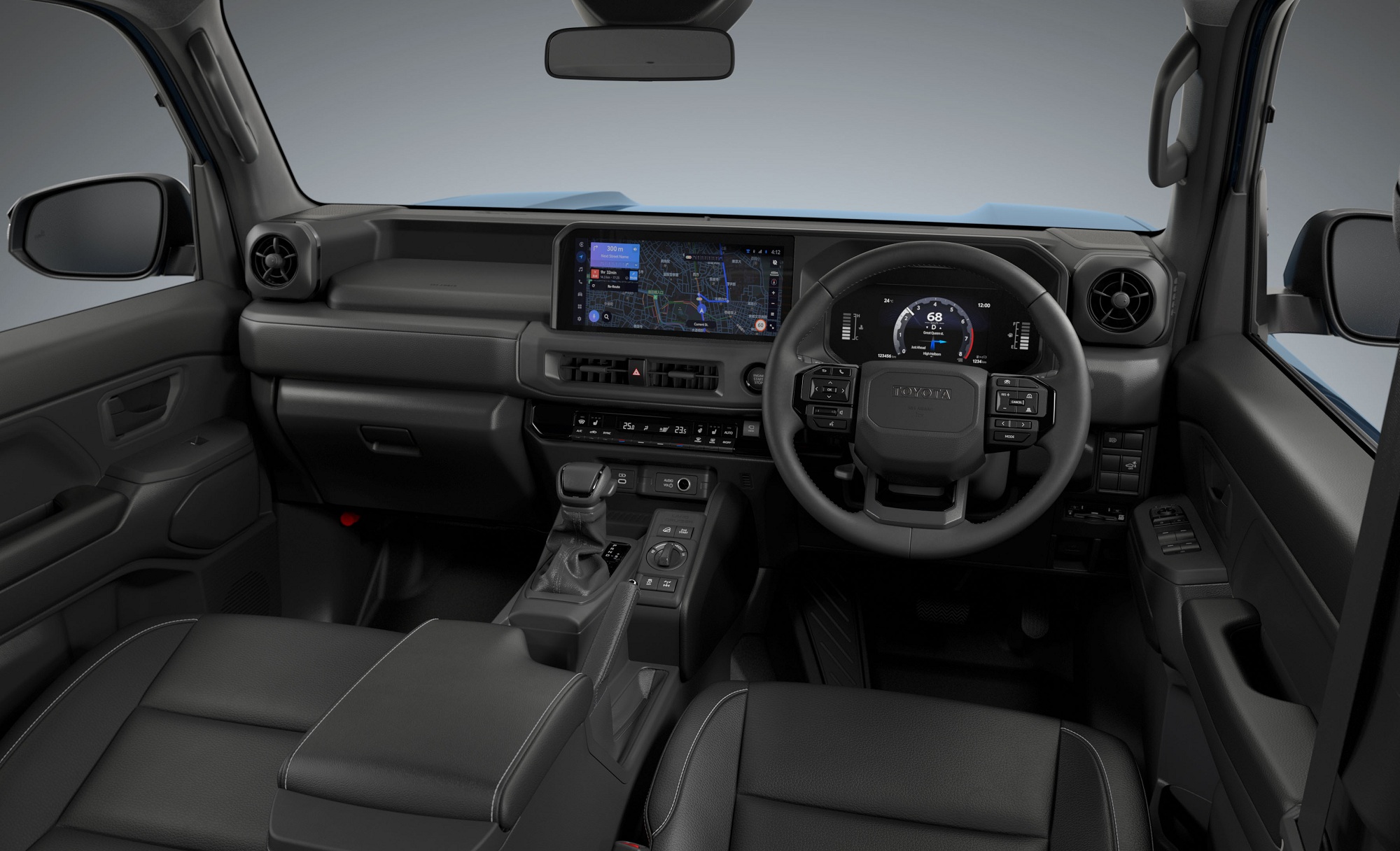 Дешевый внедорожник Toyota FJ получил цифровой щиток приборов и большой сенсорный дисплей. В топовой версии есть двухзонный климат-контроль, подогрев кресел и руля, камеры кругового обзора, датчики дождя и света, набор систем безопасности Toyota Safety Sense.
