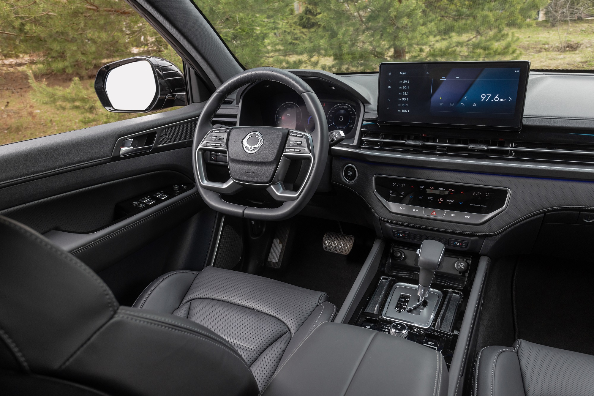 В салоне установлены цифровой щиток приборов и 12,3-дюймовый тачскрин. Объем багажника KGM Rexton составляет 872-1806 л.