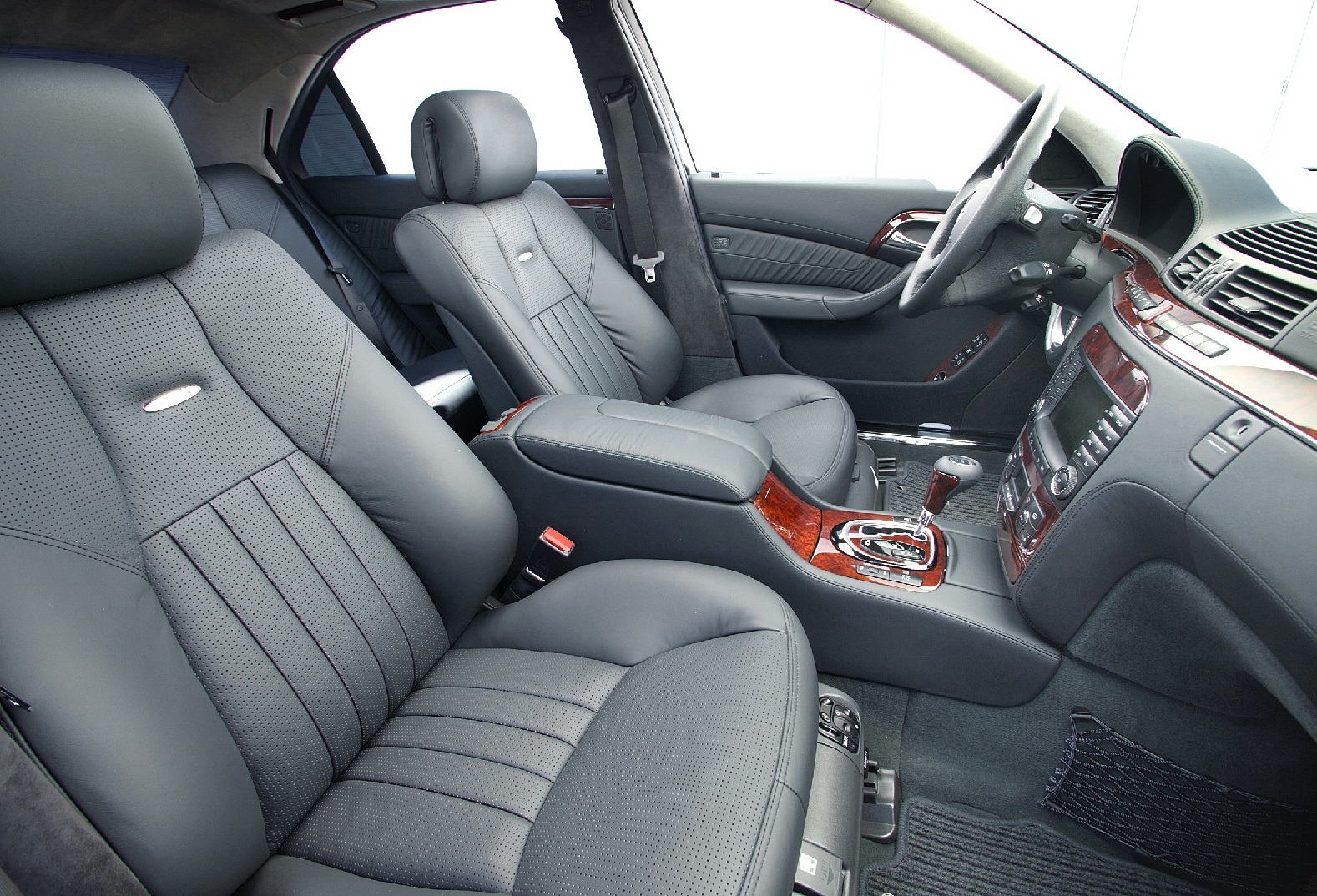 Конкретно это авто относится к удлиненной (5,16 м) L-версии. Салон Merdes S55 AMG Kompressor отделан кожей и деревом, а спортивные передние сиденья дополнили вентиляцией и массажем.