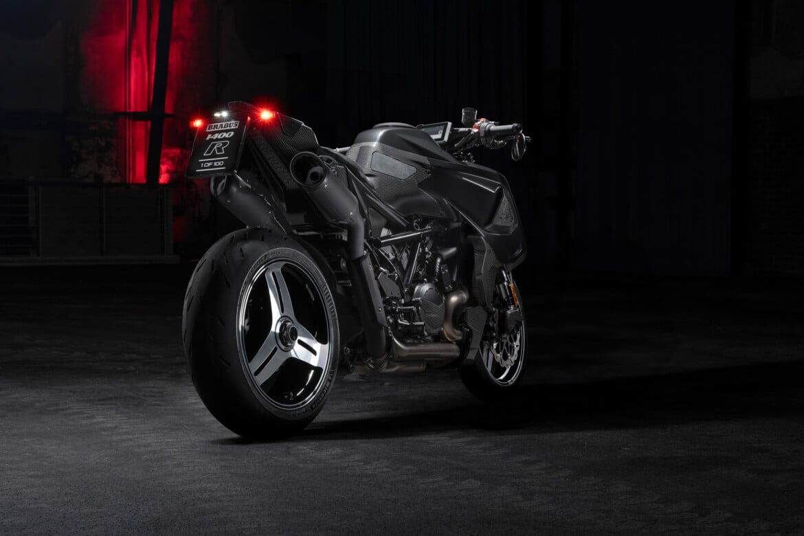 1,35-литровый двигатель V2 на 190 л.с. и 145 Нм остался без изменений, но его дополнили выхлопом Brabus. Также байк оснащен полуактивной подвеской WP-APEX и тормозами Brembo.