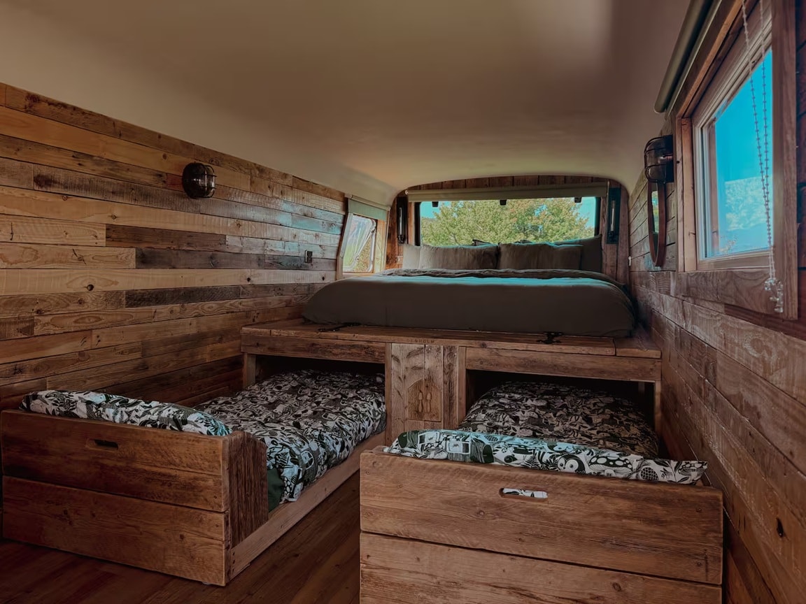 Проект назвали The Botanical Bus ("Ботанический автобус"). Автодом покрасили в зеленый цвет, а его интерьер украсили деревом и декоративными камнями. Двери и доски для пола нашли в заброшенном викторианском доме.