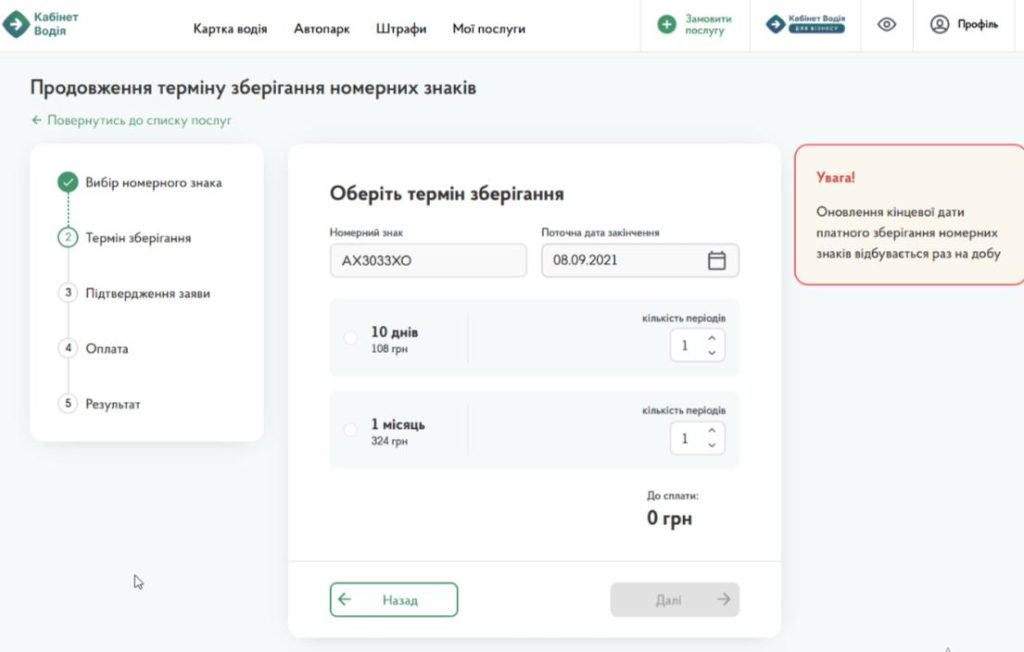 Забронировать номерные знаки на 15 дней и продлить их платное хранение на период от 10 дней до месяца снова можно в "Кабинете водителя".