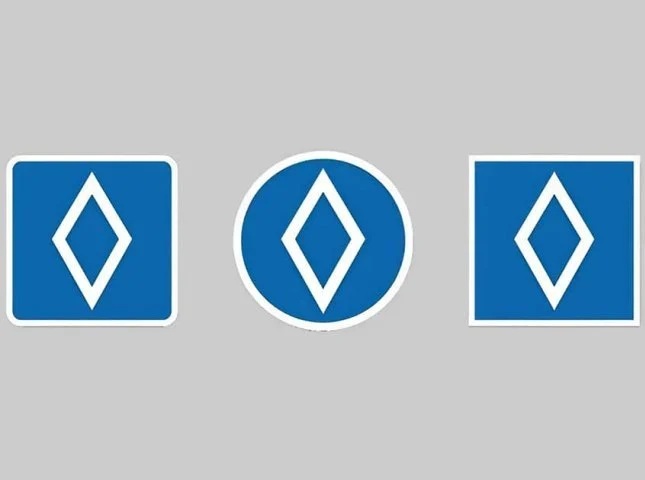 Дорожный знак с белым ромбом на синем фоне — что он значит