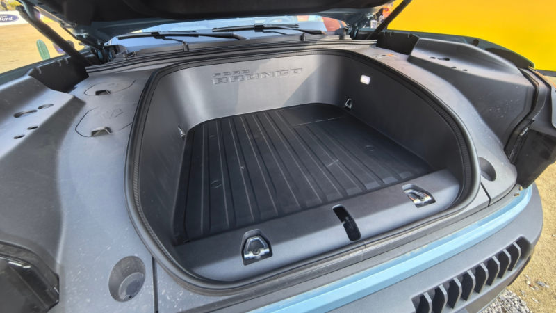 Несмотря на это, в салоне Ford Bronco 2026 остается два ряда сидений. Объем багажника составляет 497 л, также у отдельных версий есть 160-литровый отсек спереди.
