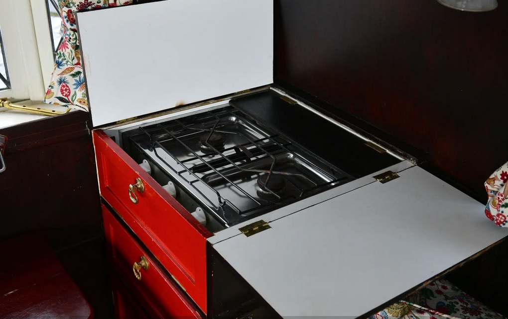 Дом на колесах рассчитан на двух человек. Внутри установили шкафы и небольшую кухню, которую в наше время дополнили новой газовой плитой.